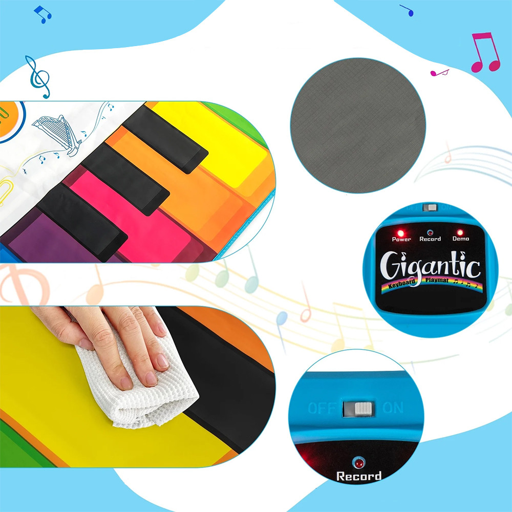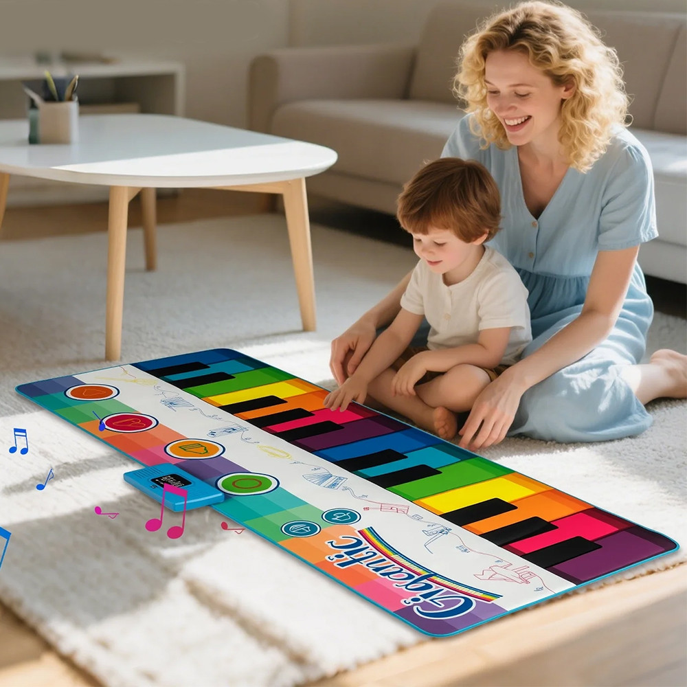 Barvita plesna podloga s pianom omogoča otrokom ustvarjanje glasbe med gibanjem. Igra spodbuja aktivno sodelovanje in ustvarjalno izražanje.