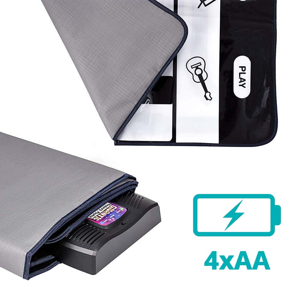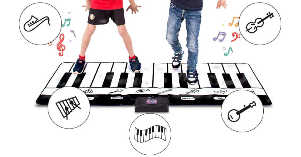 Občutljive tipke lahko aktivirajo roke ali noge, kar otrokom omogoča, da dobesedno plešejo ob melodijah. Velika igrača (180 x 74 cm) nudi dovolj prostora za več otrok, da skupaj uživajo v radosti ustvarjanja glasbe.