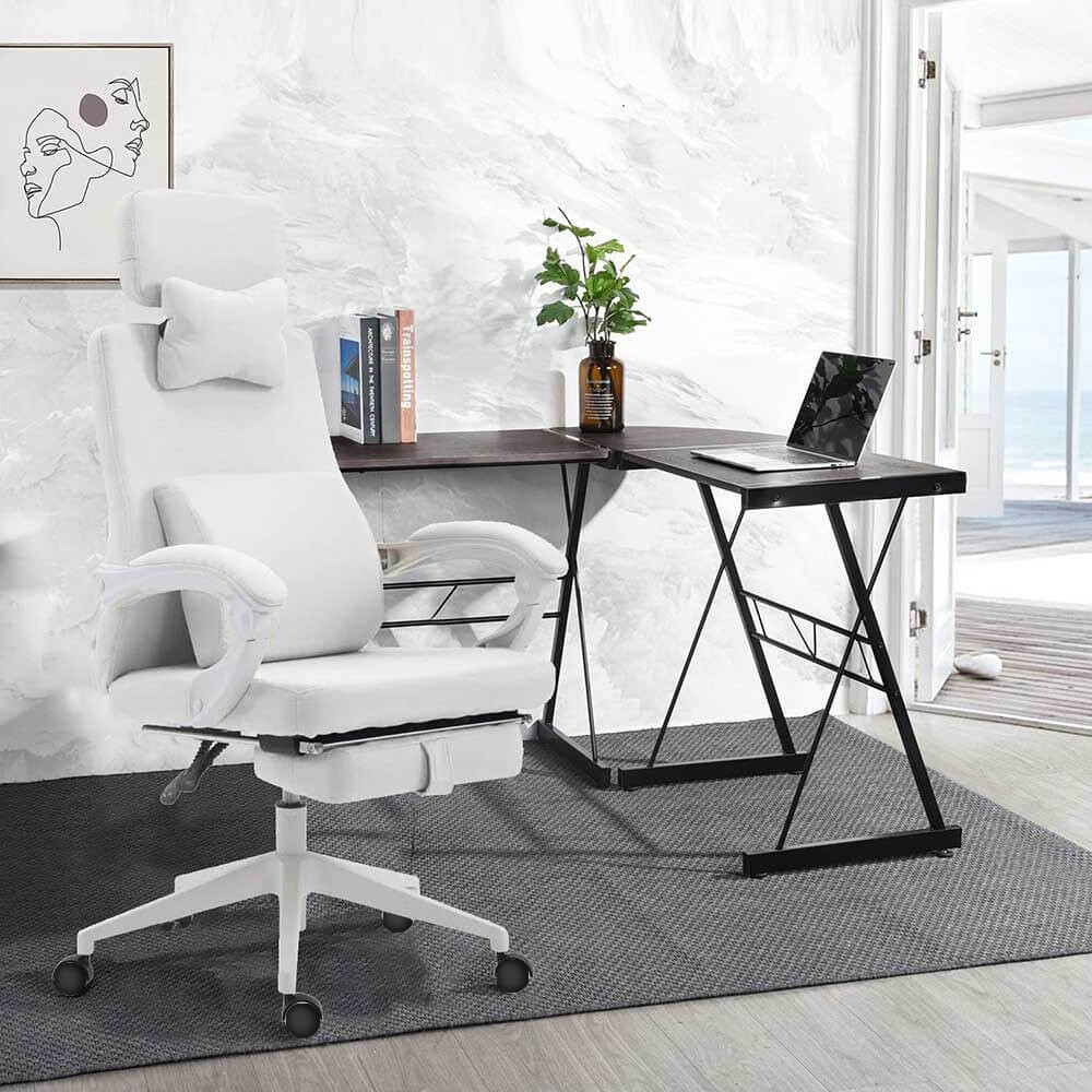 Ergonomski pisarniški vrtljiv stol z naslonjalom za glavo je popolna izbira za vsakogar, ki dolge ure dela za mizo. Njegovo nastavljivo naslonjalo za glavo, nagibno naslonjalo in zložljivo naslonjalo za noge zagotavljajo maksimalno udobje, medtem ko njegova trdna struktura in robustna osnova omogočata dolgotrajno uporabo.
