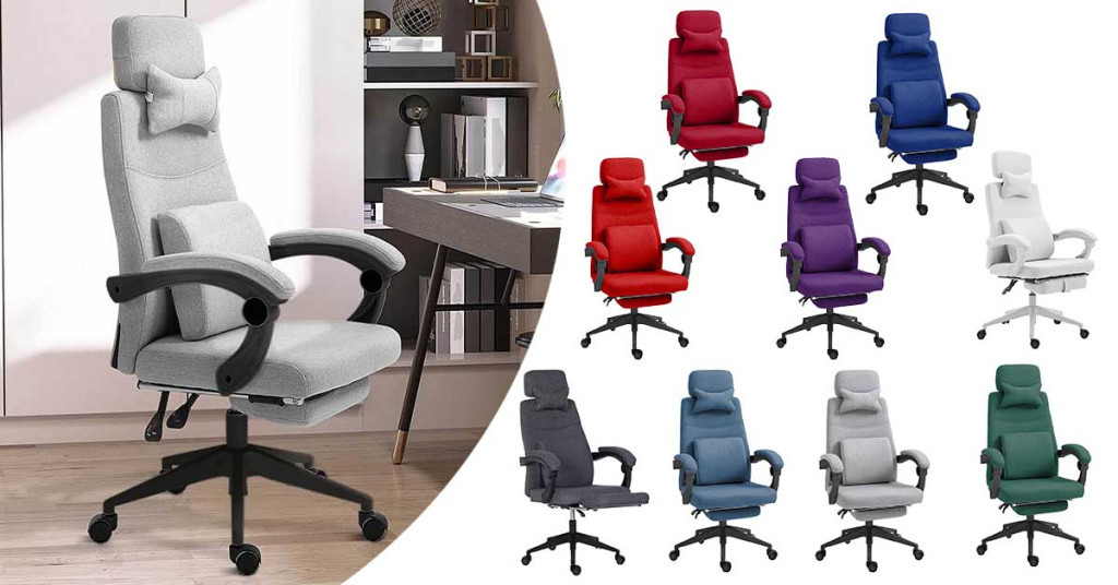 Ergonomski pisarniški vrtljiv stol z nastavljivim naslonjalom za glavo in nogo - več barv