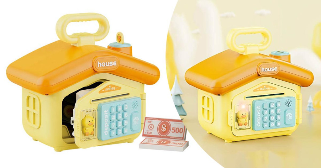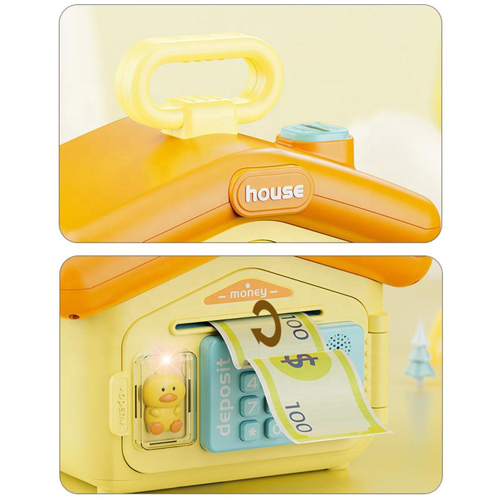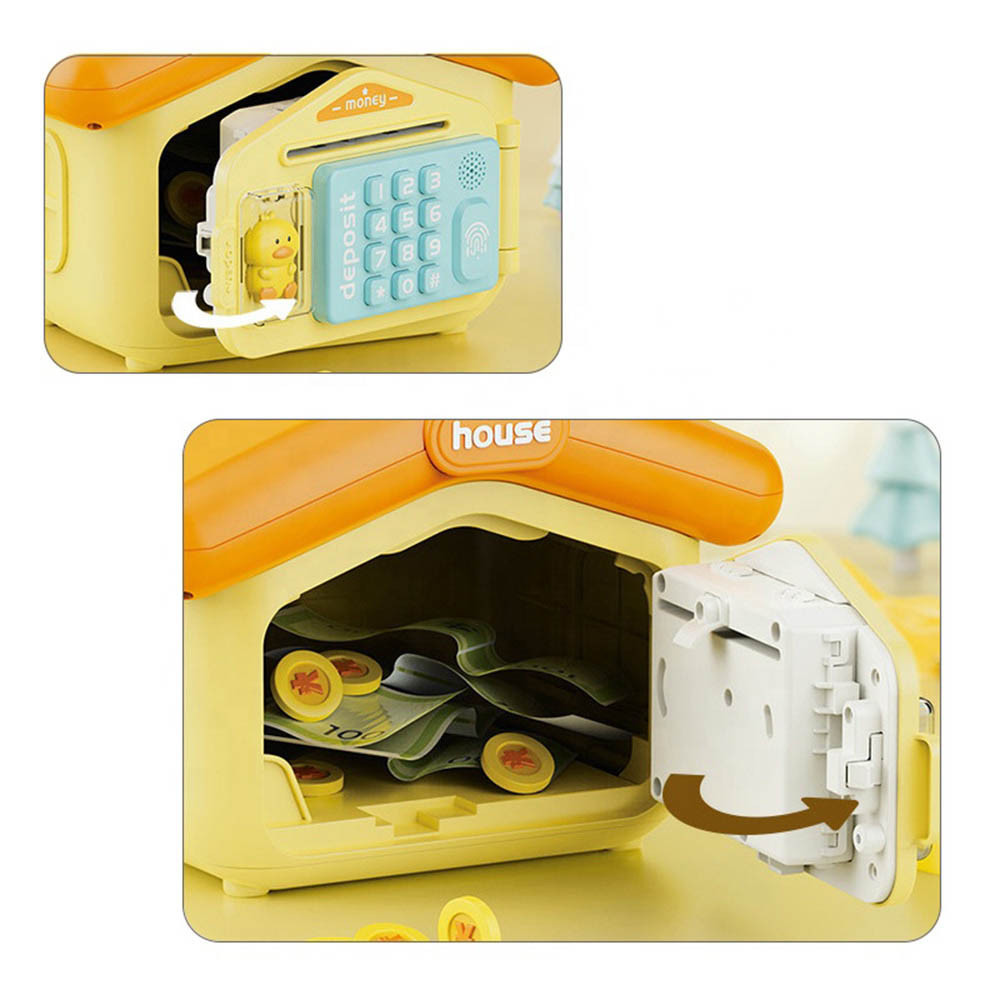 Hranilnica samodejno vpije bankovce z zvočnimi učinki, prav tako kot pravi bankomat. Otroci lahko nastavijo svojo geslo, kar jim omogoča, da se na igriv način naučijo osnov varnega ravnanja z denarjem.