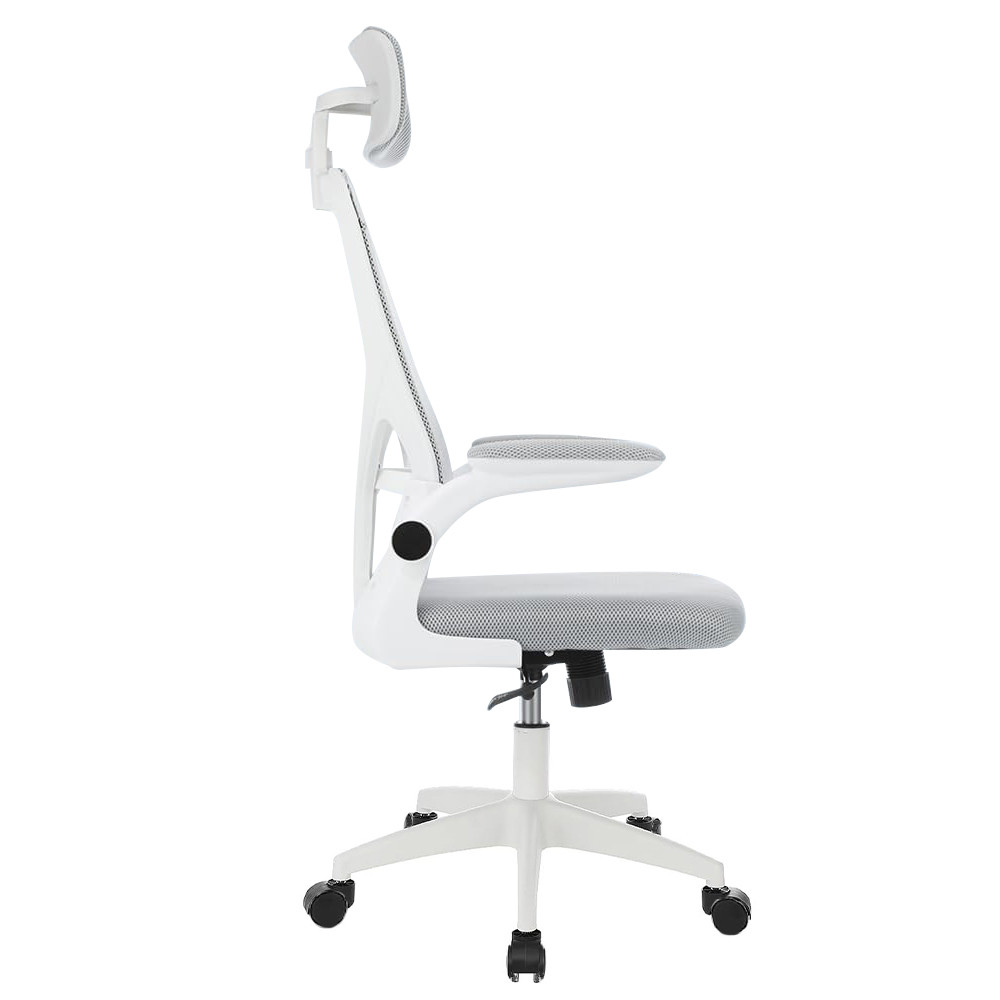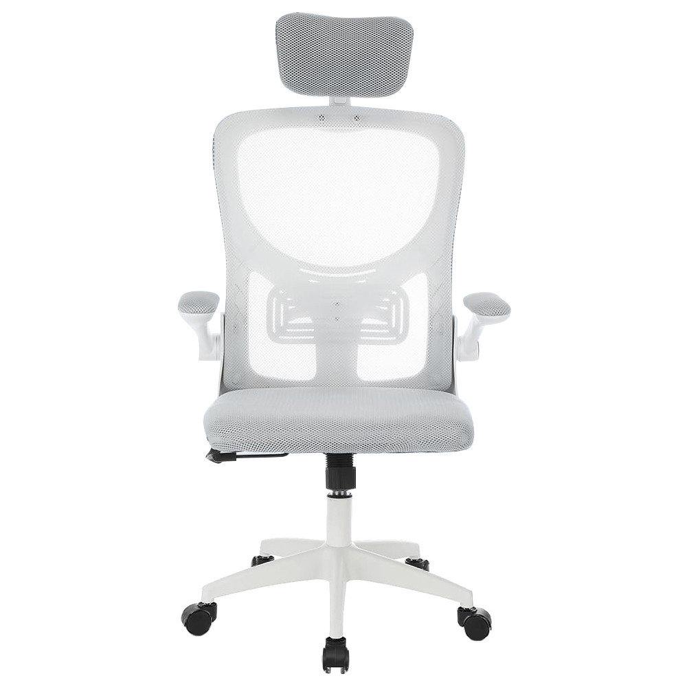 Ergonomska pisarniška stolica z ledveno oporo in naslonjalom za glavo - Siva