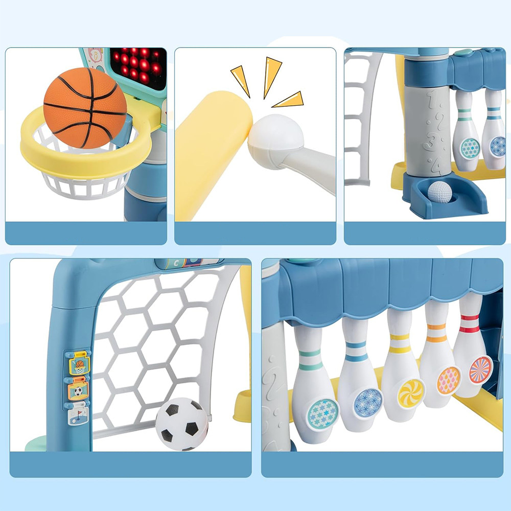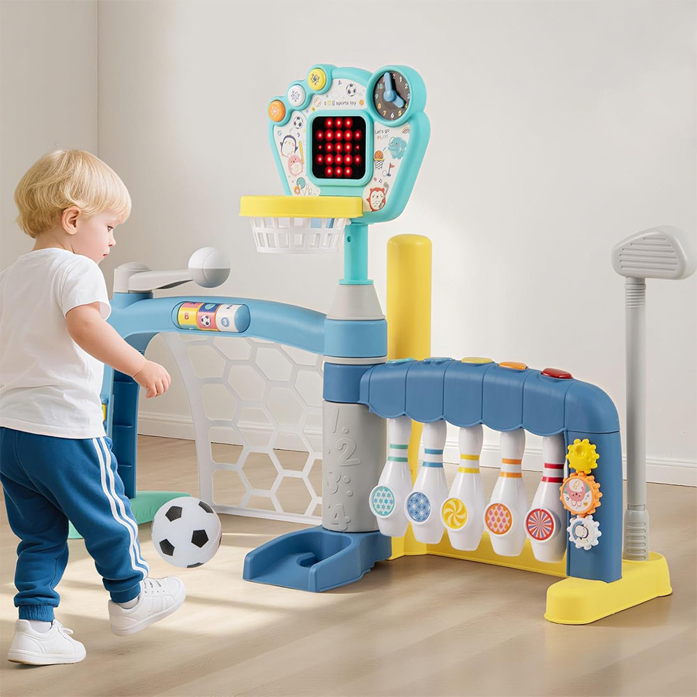Športni center ponuja različne fizične aktivnosti z košarko, nogometom, kegljanjem, golfom in bejzbolom, kar otrokom omogoča, da med igro odkrijejo nove izzive.