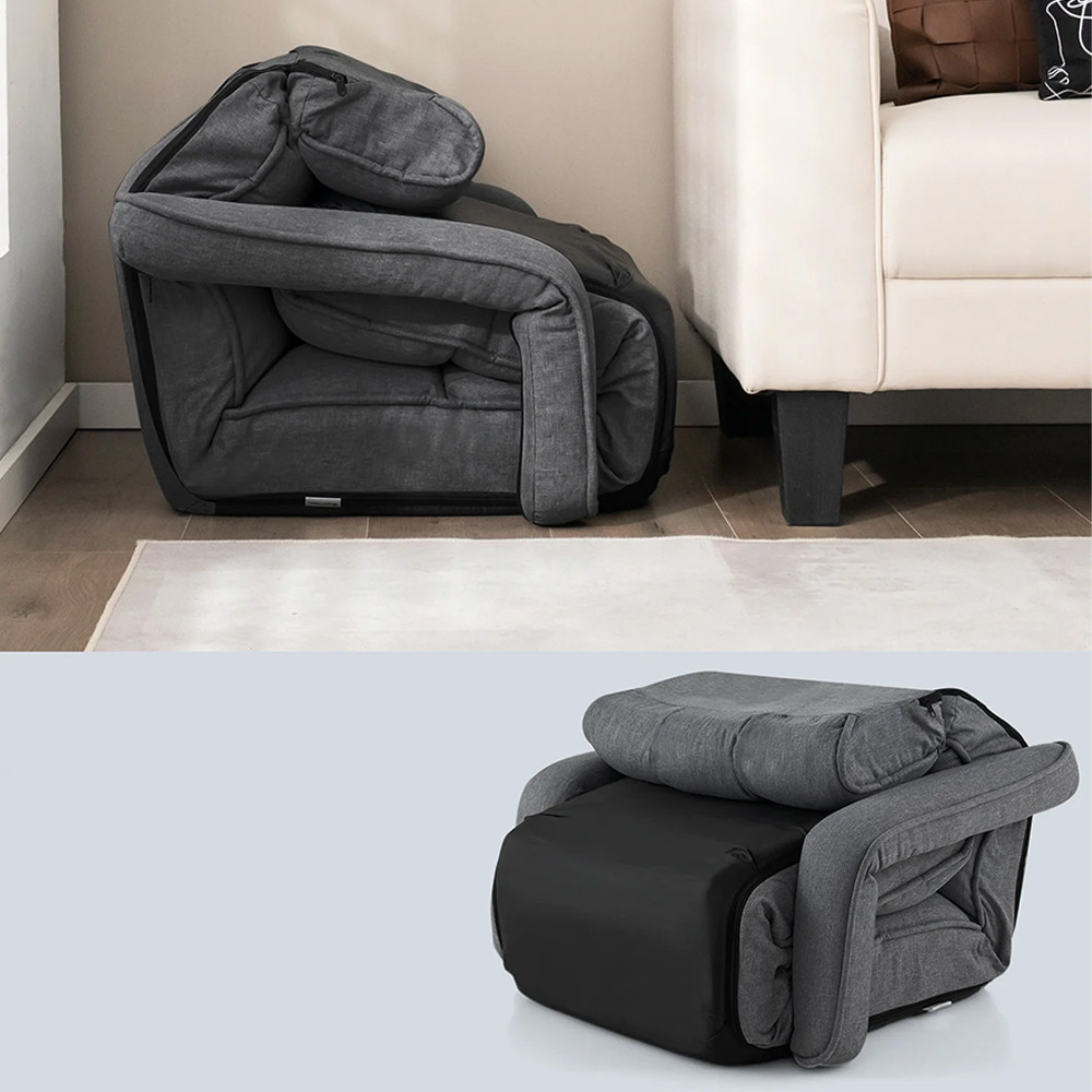 Ni potrebna sestava – samo razpakirajte in že je pripravljeno za uporabo! Ko ni v uporabi, se enostavno zloži in lahko spravite v omaro ali pod posteljo. Ta udobna talna stolica je idealna za majhne stanovanje, najemniške prostore ali kot popolna rešitev za ležišče za goste.
