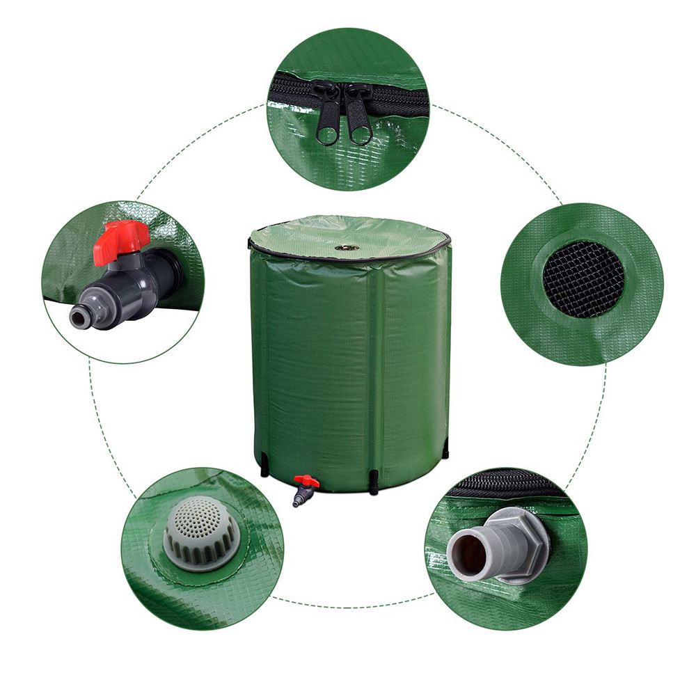 Zaščitna mreža na vrhu preprečuje, da bi listi, insekti ali drugi odpadki vstopili v vodo. Ventil za odtok na dnu omogoča enostavno praznjenje, tako da lahko zbiralnik kadarkoli enostavno izpraznite.